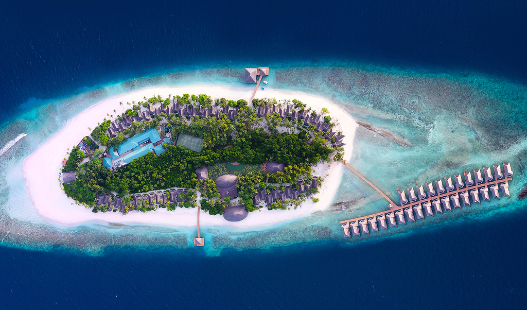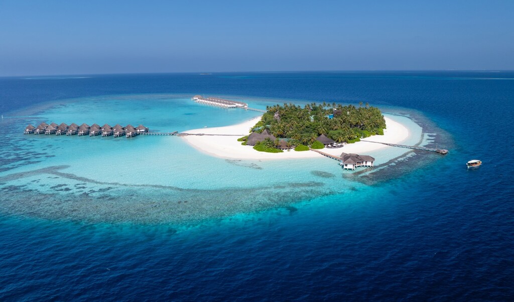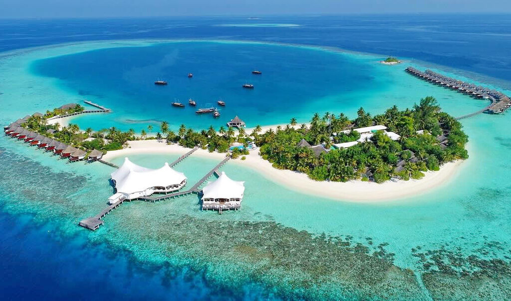 Distance from Velana International Airport (Male' international Airport) is about 60 km and takes about 25 minutes to reach the Island by Seaplane.